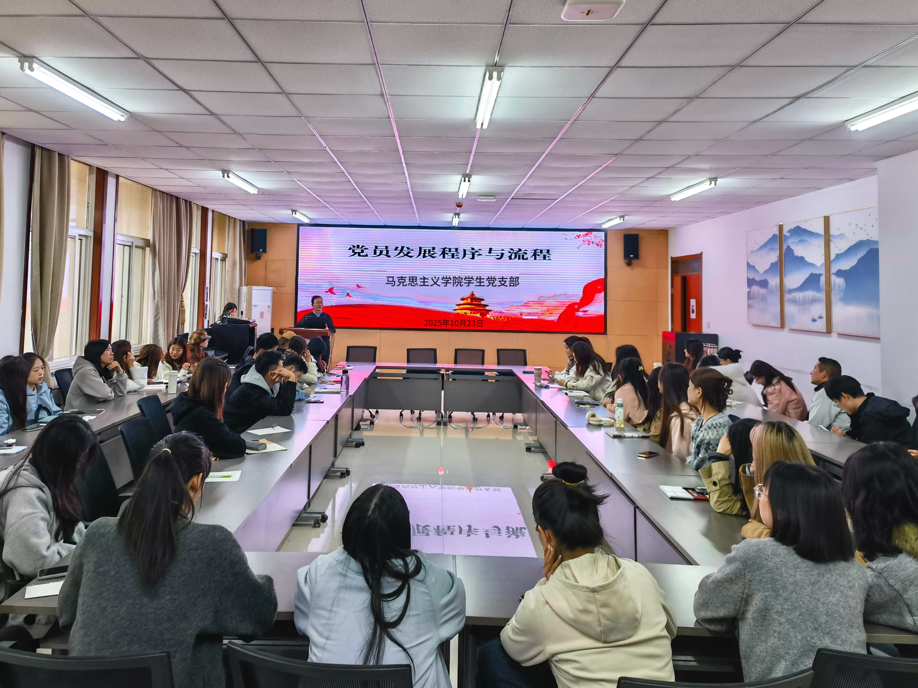 徐鹏重点讲解了党员发展具体程序与流程、入党动机及党员义务等核心要点。他同时提出,作为马克思主义学院的学生,需将专业学习与党员发展相融合。最后,徐鹏鼓励各位入党积极分子用心钻研学业,稳步夯实专业基础。