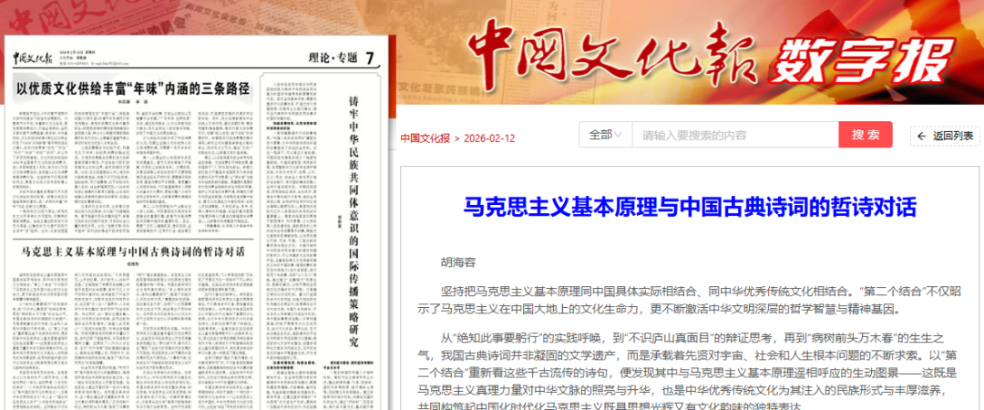 坚持把马克思主义基本原理同中国具体实际相结合、同中华优秀传统文化相结合。“第二个结合”不仅昭示了马克思主义在中国大地上的文化生命力,更不断激活中华文明深层的哲学智慧与精神基因。 从“绝知此事要躬行”的实践呼唤,到“不识庐山真面目”的辩证思考,再到“病树前头万木春”的生生之气,我国古典诗词并非凝固的文学遗产,而是承载着先贤对宇宙、社会和人生根本问题的不断求索。以“第二个结合”重新看这些千古流传的诗句,便发现其中与马克思主义基本原理遥相呼应的生动图景——这既是马克思主义真理力量对中华文脉的照亮与升华,也是中华优秀传统文化为其注入的民族形式与丰厚滋养,共同构筑起中国化时代化马克思主义既具思想光辉又有文化韵味的独特表达。 宇宙观与自然观的共鸣。马克思主义认为自然先于人类而存在,人是自然界的一部分,自然界是“人的无机的身体”。“人与自然和谐共生的现代化”是中国式现代化的特色之一,正是中华优秀传统文化“天人合一”理念与马克思主义关于“人与自然和谐共生”思想相契合的体现。这种契合不仅体现在抽象理念上,更融汇于古典诗词对自然与人生的深邃观照之中。“天人合一”理念追求的是天、地、人之间的整体性与和谐性,强调“道法自然”。它并非抽象的哲学空谈,而是化入了诗人对宇宙的生动感知。“木末芙蓉花,山中发红萼。涧户寂无人,纷纷开且落。”王维描绘了辛夷花在寂静山涧自开自落的生命图景,其中不见人为干预和价值评判,纯粹呈现了天地万物自在自为、依其本性运行的自然状态,这正是“天人合一”境界中,人与自然作为有机整体“自然而然”的生动映照。与此同时,这一理念也蕴含着人能认识并顺应自然规律,进而达致和谐共生的积极精神。“谁道人生无再少?门前流水尚能西!休将白发唱黄鸡。”苏轼洞察到自然规律并非僵化不变,进而汲取了超越常规、乐观进取的精神力量。这展现了人作为认识主体,在对“天行有常”深刻理解的基础上,能够主动调整心态、积极作为,实现精神与自然的共鸣,暗含了“制天命而用之”的实践智慧。 社会观与矛盾观的相通。“和而不同”是中国传统文化的重要理念,强调在和谐共生中保持各自的独立性。这一理念与马克思主义矛盾观相通。马克思主义通过矛盾的同一性与斗争性来表述相关理念。在我国古典诗词中,这一理念通过多元意象的并存、对立元素的调和等来展现。“沉舟侧畔千帆过,病树前头万木春”呈现了旧事物灭亡与新事物勃发的对立与统一;“山重水复疑无路,柳暗花明又一村”体现了事物发展的前进性与曲折性相统一。 实践观与认识论的契合。马克思主义的实践观同中华优秀传统文化的“躬行”理念高度契合。马克思主义实践观强调实践既是认识的源泉也是检验真理的唯一标准。我国古典诗词对此也有形象的表达:“纸上得来终觉浅,绝知此事要躬行”,强调了实践对认识的决定作用。“横看成岭侧成峰,远近高低各不同”,说明了人们观察事物的立足点不同,就会得出不同的结论。这种观点与马克思主义认识论中关于立场和方法对认识结果的影响高度一致。 历史观与发展观的交融。中华优秀传统文化蕴含着丰富的历史发展观念,这些观念与马克思主义历史观有着诸多相通之处。“野火烧不尽,春风吹又生”展现了生命力的顽强与历史发展的不可阻挡,与马克思主义关于事物永恒发展的观点不谋而合。“人事有代谢,往来成古今”则能够体现马克思主义关于社会历史不断发展的观点。 方法论与思维方式的契合。在思维方式上,中华优秀传统文化蕴含的理念与马克思主义存在很多相似性。我国古典诗词中体现的整体思维、辩证思维,与马克思主义的系统思维、辩证思维形成了对话。“问渠那得清如许,为有源头活水来”强调不断接受新知识才能产生新思想。这种开放进取的精神与马克思主义的开放性高度契合。在矛盾分析方法上,中国古典诗词提供了丰富例证。“梅须逊雪三分白,雪却输梅一段香”说明了不同事物各有特点,应具体问题具体分析。“旧时王谢堂前燕,飞入寻常百姓家”则体现了矛盾双方在一定条件下可以转化的道理。这些生动的诗词表述使抽象的哲学原理变得形象可感。 当代价值与创新转化。将我国古典哲理诗词与马克思主义基本原理相结合,不仅具有学术价值,更有着深远的现实意义。这种结合为推进马克思主义中国化时代化提供了重要的文化资源,也为中华优秀传统文化的创造性转化、创新性发展开辟了新路径。在教育领域,一些高校尝试在马克思主义基本原理课程中引入古典诗词,比如,西北政法大学思政课教师将古典诗词作为导入新课的引子和理解马克思主义基本原理的例子,有效激发学生的学习兴趣,进一步激活了理论课堂。 当我们读到“落红不是无情物,化作春泥更护花”时,不仅能感受到奉献精神,还能理解唯物辩证法中的事物普遍联系和永恒发展。这些流传千年的诗句,正在当代焕发出新的思想光辉,成为连接古今中外的重要文化桥梁。 中国古典诗词与马克思主义基本原理相结合,有助于造就一个有机统一的新的文化生命体——让马克思主义成为中国的,中华优秀传统文化成为现代的,让经由“结合”而形成的新文化成为中国式现代化的文
