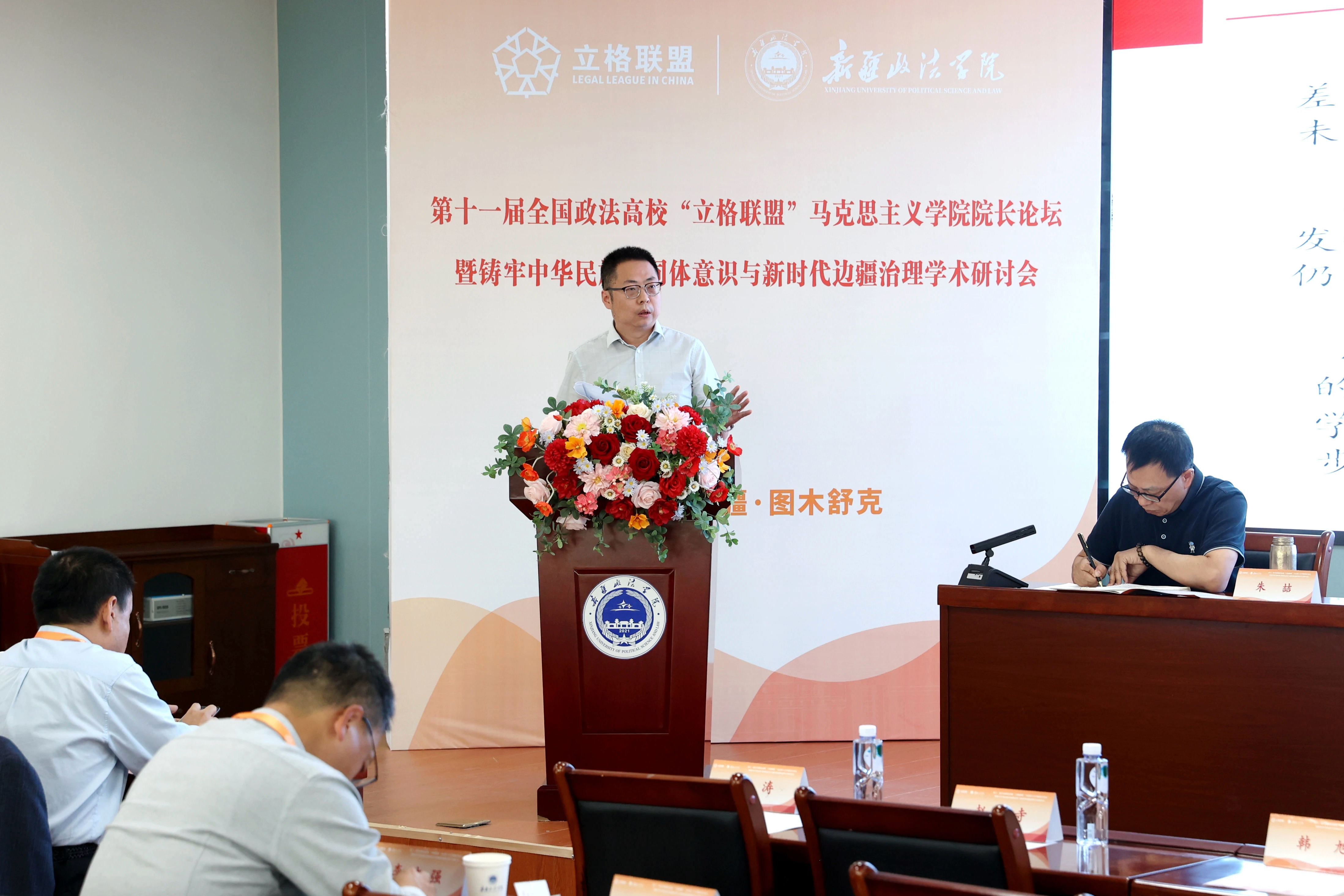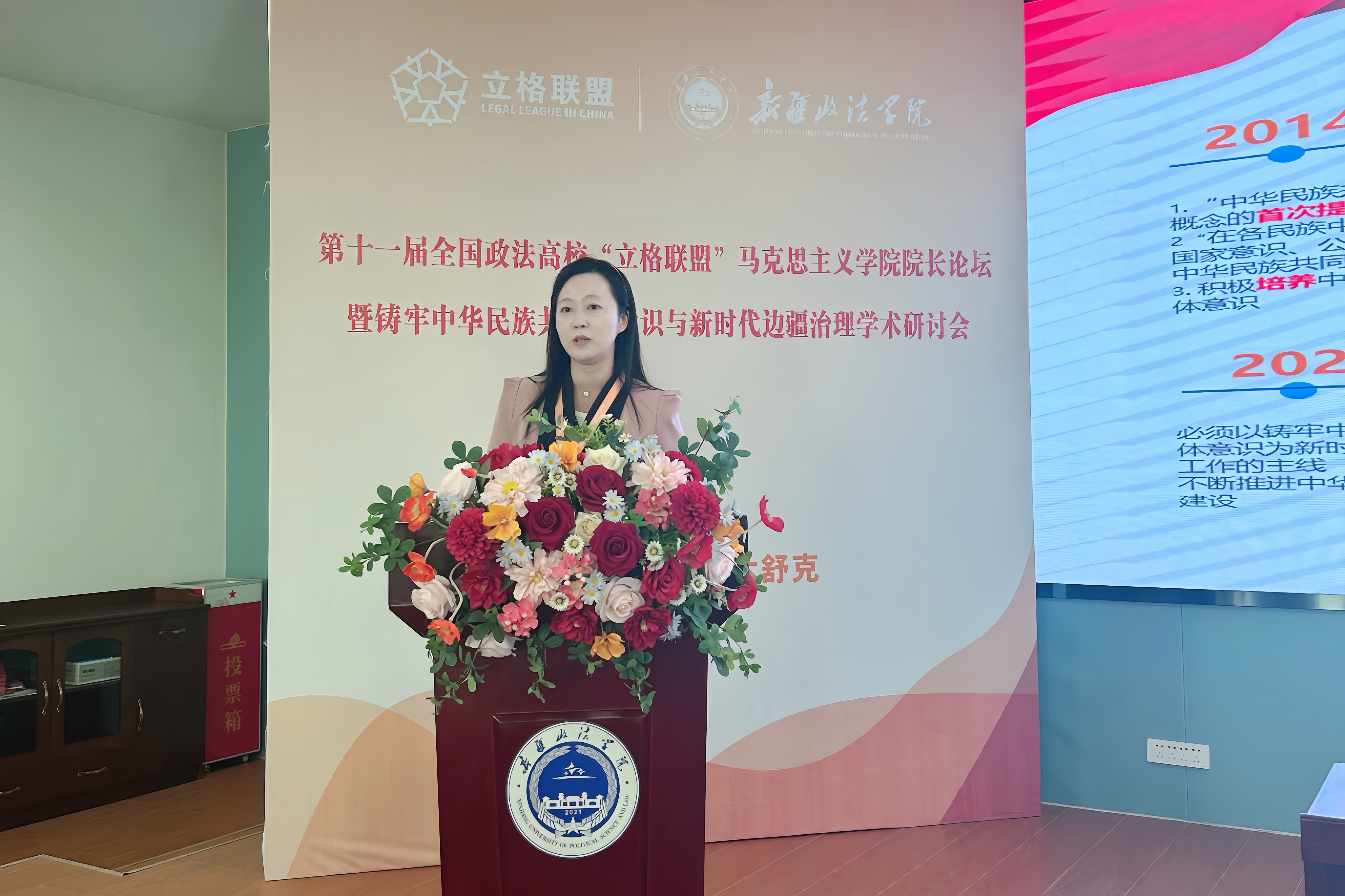 近日,第十一届全国政法高校“立格联盟”马克思主义学院院长论坛暨铸牢中华民族共同体意识与新时代边疆治理学术研讨会在新疆政法学院举行。我院副院长鲁洋、院长助理赵琳、闫欢与来自于中国政法大学、中国社科院、中南财经政法大学、华东政法大学等立格联盟理事长成员单位、各兄弟院校学者共90余人组成的代表团深度参与论坛各项活动。