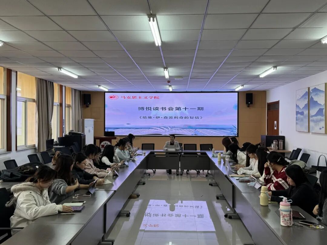 为提升研究生阅读能力,夯实理论根基,12月16日,我院思想政治教育专业博悦读书会活动第十一期在诚意楼五楼会议室举办。本次读书会由雷玉翠教授主持,围绕《给维·伊·查苏利奇的复信》展开研读,我院2024级和2025级思想政治教育专业研究生参加。