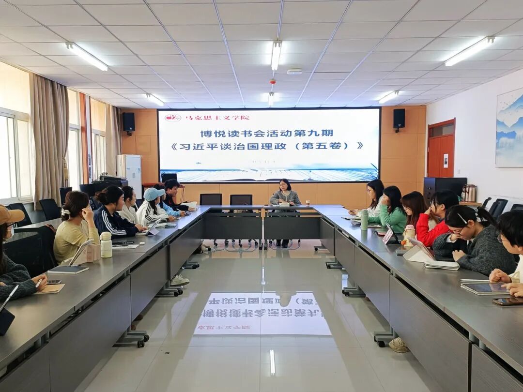 为提升研究生阅读能力与理论素养,11月4日,我院思想政治教育专业博悦读书会第九期在诚意楼五楼会议室举行,师生展开对《习近平谈治国理政》第五卷的研读、学习与交流。活动由高静副教授主持,我院2024级、2025级思想政治教育专业研究生参加。